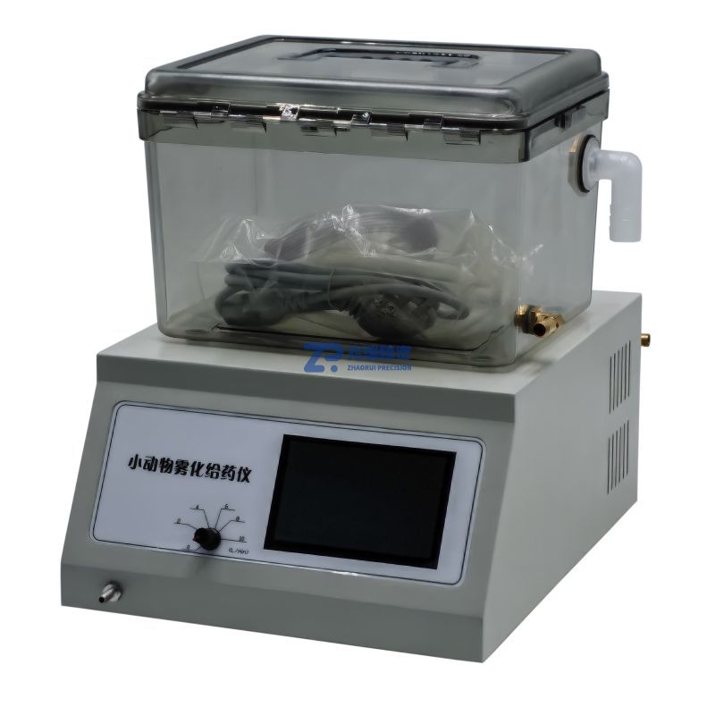 The rodent nebulization administration instrument adopts compressed air generated by a compression type. When the compressed air is ejected from the nozzle, negative pressure is generated between the nozzle and the suction pipe to suck up the liquid medicine upwards. The sucked liquid medicine impacts the upper baffle and is sprayed outwards as extremely fine mist. It is used for respiratory tract, oral cavity, lung and other absorption medication in animals.